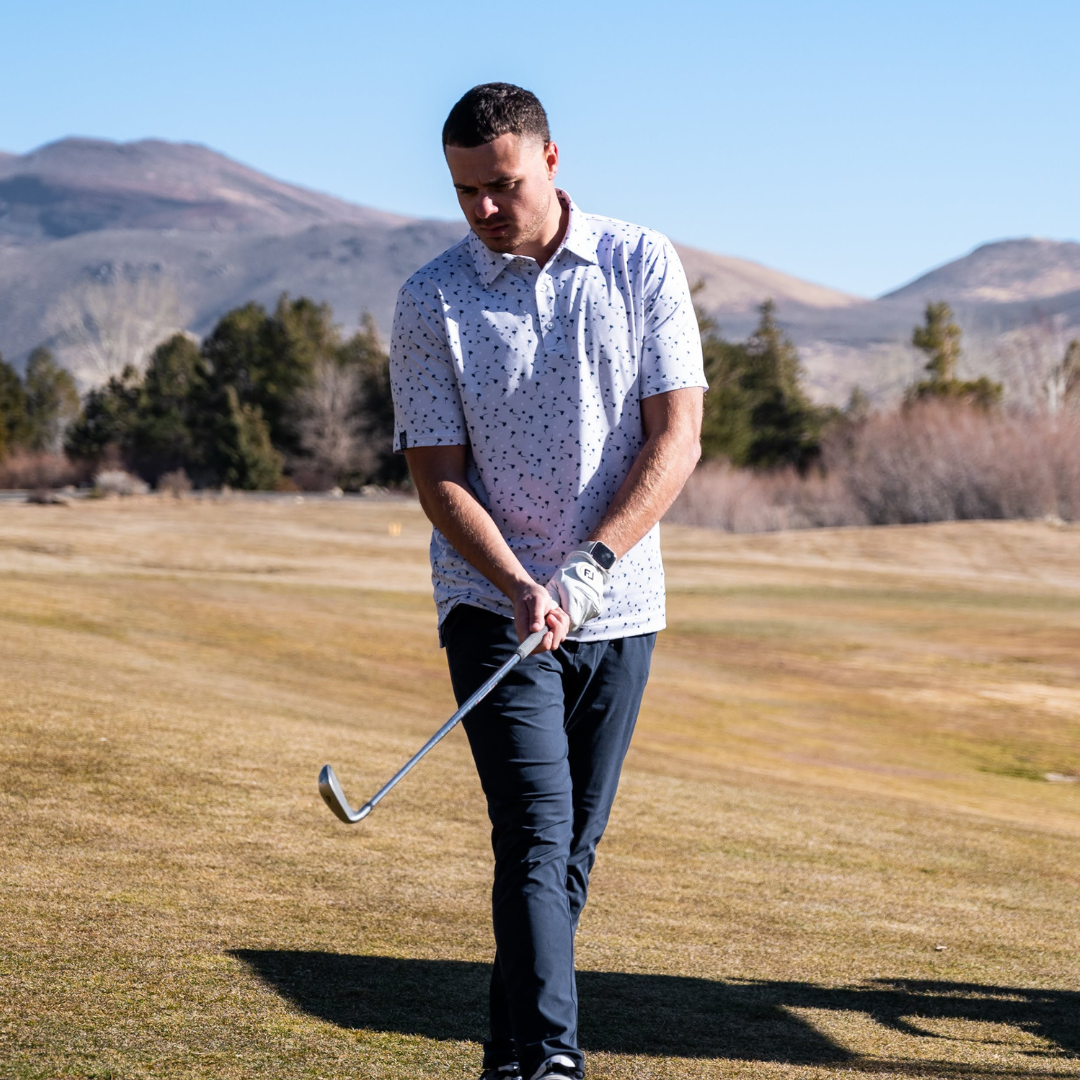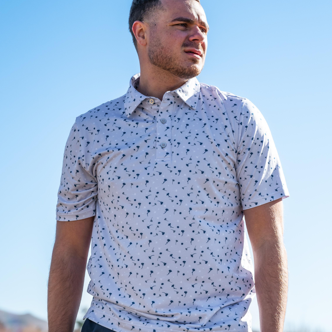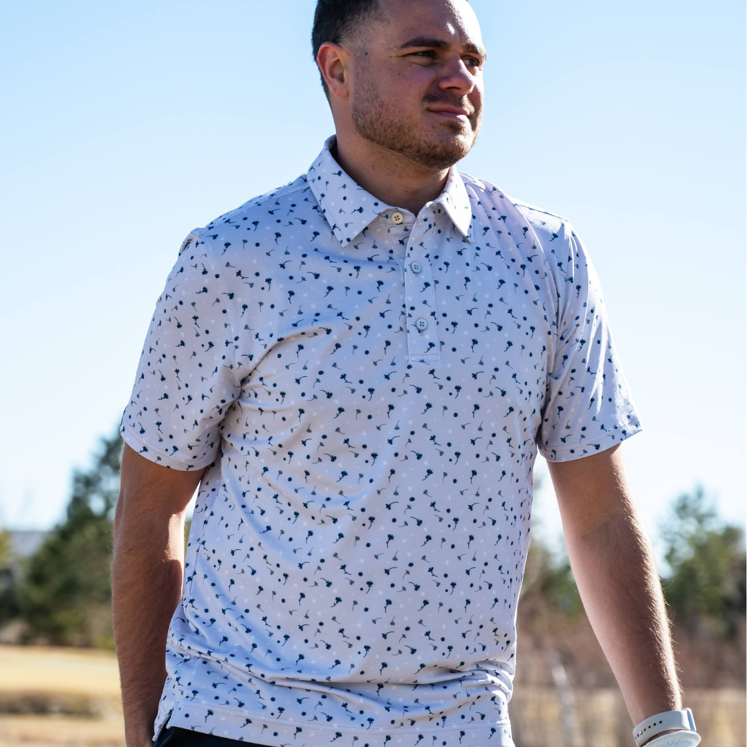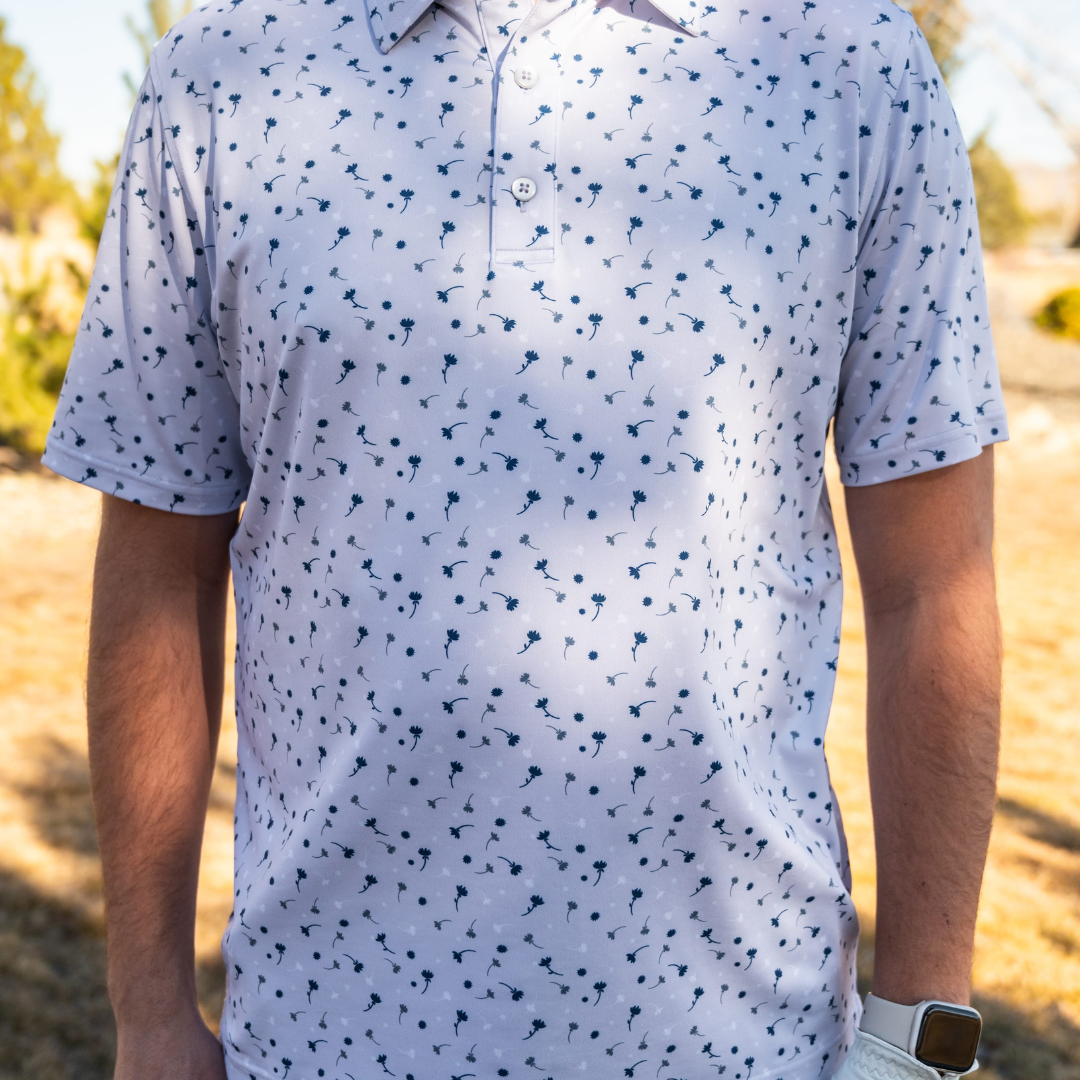 The Foggy Fairway Golf Polo is a unique blend of classic and modern style. Its soft grey base is adorned with a delicate floral pattern in shades of white and blue, evoking the misty morning air on the golf course. The soft, breathable fabric ensures optimal comfort, making it perfect for both on and off the course. Whether you’re playing a round in foggy conditions or enjoying a post-round drink, this polo is the perfect choice for the discerning golfer